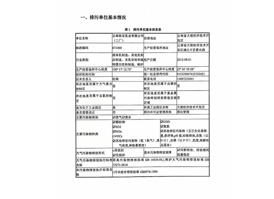 云南歐亞乳業有限公司子公司牧場環保信息公示